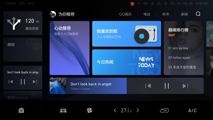智能语音控制和微信车载版解决了功能性需求,那如何满足车主的娱乐需求呢?为此,哈弗F5准备了爱趣听2.0系统,其整合了腾讯系车载娱乐资源,拥有千万级别数量的QQ音乐版权歌曲,并覆盖喜马拉雅FM等丰富平台资源,无论是歌曲、相声还是有声书,一切娱乐需求都能满足。同时,车家互联也是亮点所在,远程控制空调、电视和冰箱等智能家居,完美地将生活和用车衔接在了一起。