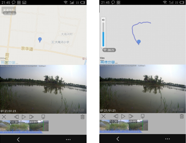 1080P录制过程中,从app上观察可见录制见面略显卡顿,本人对这一问题毫不在意,因为app与摄像机是通过wifi连接,有个数据传输的问题,出现卡顿也是正常现象;录制完频后,播放预览非常流畅。即使是大角度的转动(瞬间速度变快或变慢)也未出现视频卡顿。