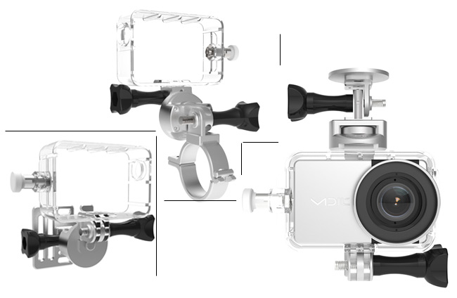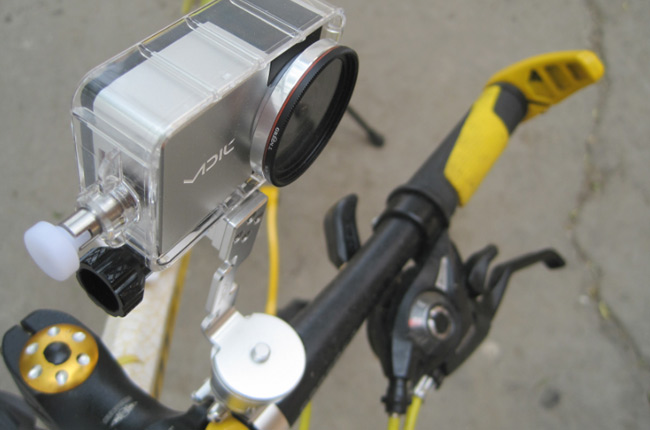 骑行,把摄像机固定在车把上;解放双手,享受骑行;固定摄像机的配件可以多角度调整,让摄像机拍到更多角度的视频。