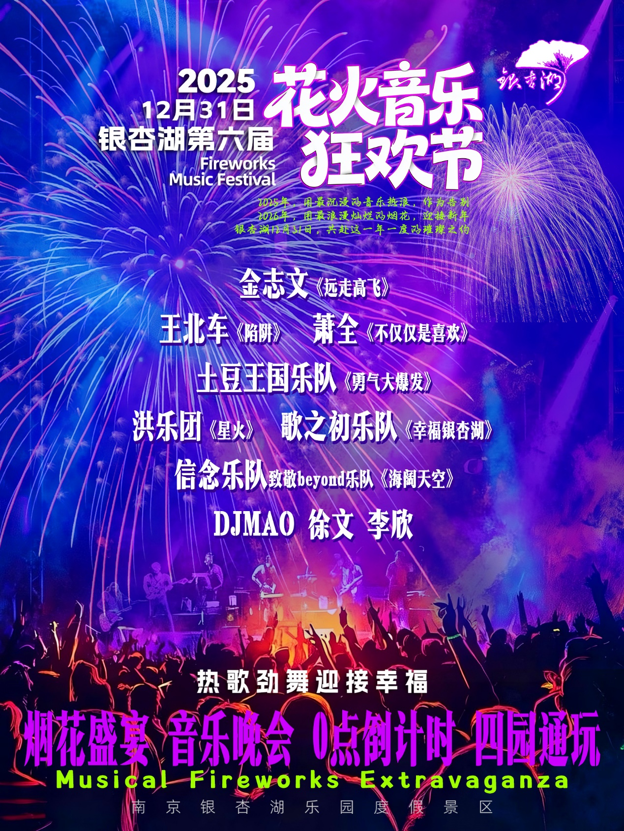 12月31日,南京银杏湖乐园“第六届花火音乐狂欢节” 将热力启幕,一场集娱乐、文化于一体的跨年盛典即将上演。活动融合多元体验,以璀璨烟火、经典剧目、互动游戏和灯光艺术,为冬日金陵注入温暖活力,成为城市跨年文化的新名片。