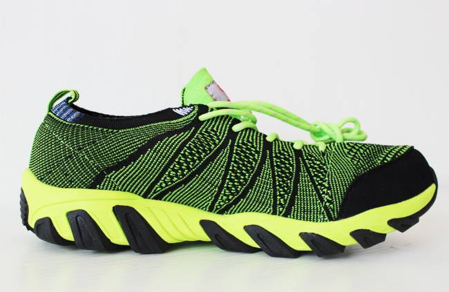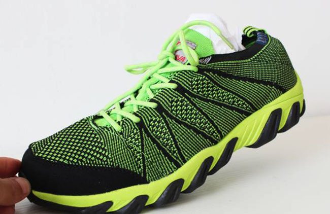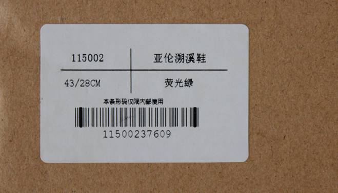 第一次看到鞋盒上这样43/28cm的标识,标的是相当的精准。打开鞋盒的瞬间小驴惊喜万分,正是我忠爱的荧光绿,荧光绿与黑色交相映衬再加上鞋面尼龙立体针织布料的精细做工搭配,感觉档次瞬间提升了不少,作为一款简单得溯溪鞋,能有如此做工确实让人欣慰。