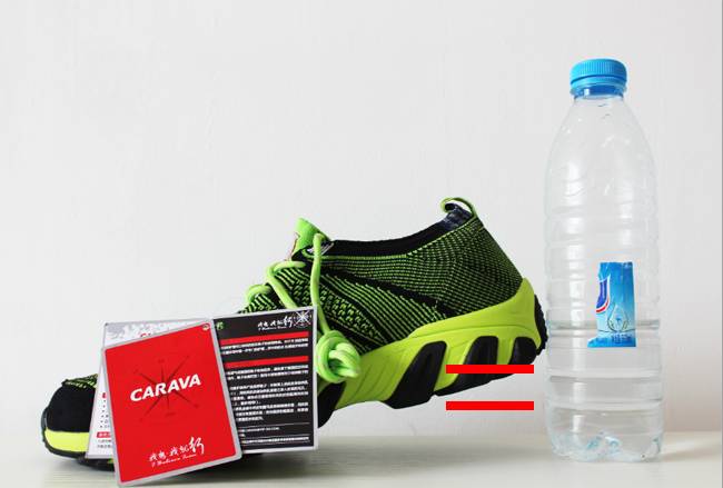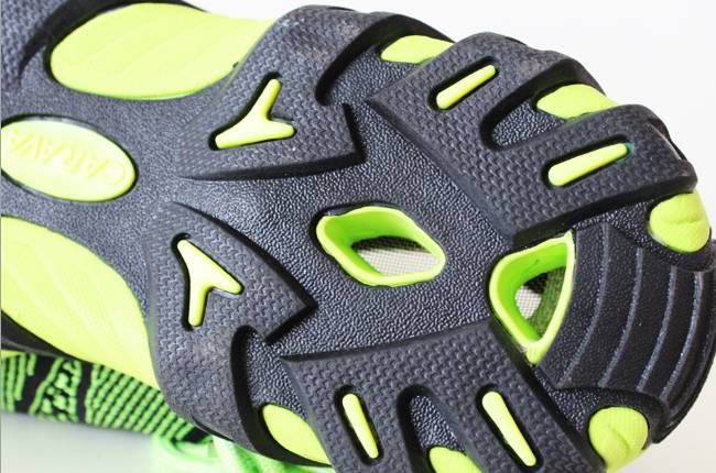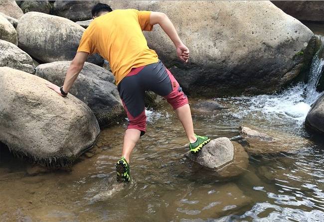 荧光绿的鞋子在水中颜色更家鲜艳,很吸引眼球。溯溪过程中经常会遇到水底有淤泥的地方,行走时丝毫没有感觉到滑,水底的淤泥也未侵入的鞋底内。