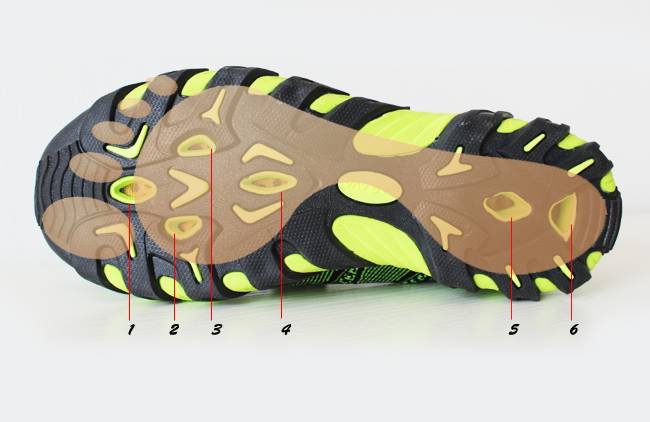 6个排水孔有效保证鞋内的水迅速排出,尽快干爽。