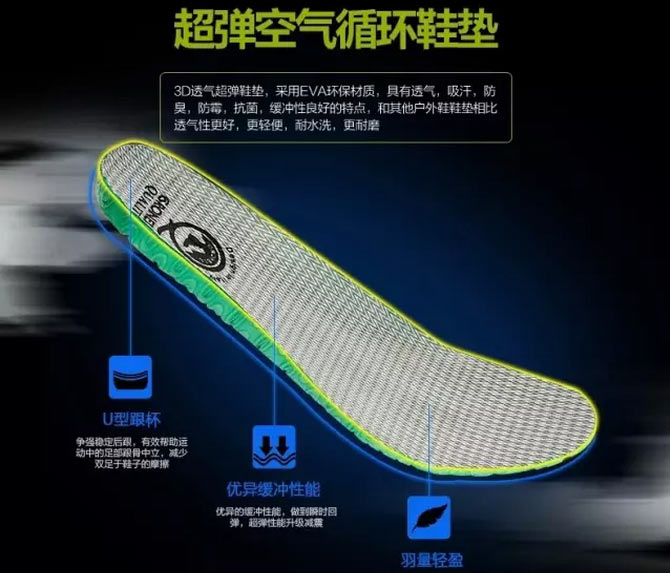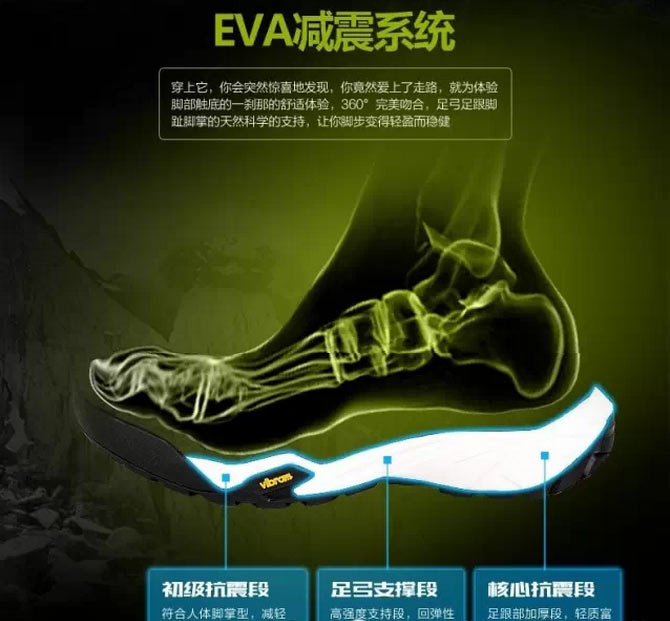 三、中底采用 EVA减震系统有效吸震,穿着更舒适;