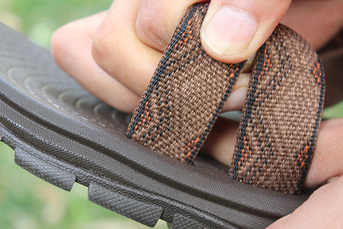 Chaco凉鞋的一大特点是由一条织带完全贯穿鞋底,扯动一边,其他位置会联动,可根据个人脚型调整,使穿着更舒适。