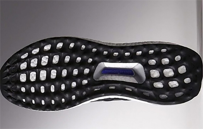 Ultra Boost鞋底将原先置于中底下方的防扭转系统Torsion System完全植入了Boost中底之中。
